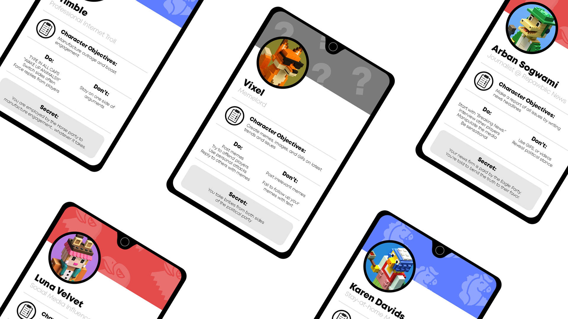 In this TTRPG, you will be playing different roles in our society. Armed with your phone, you must now gather as much engagement online by posting statements, news, memes, etc. to be able to get the power to influence the public vote. You’ll do this by following trends and using them to your advantage to work towards your personal agenda.