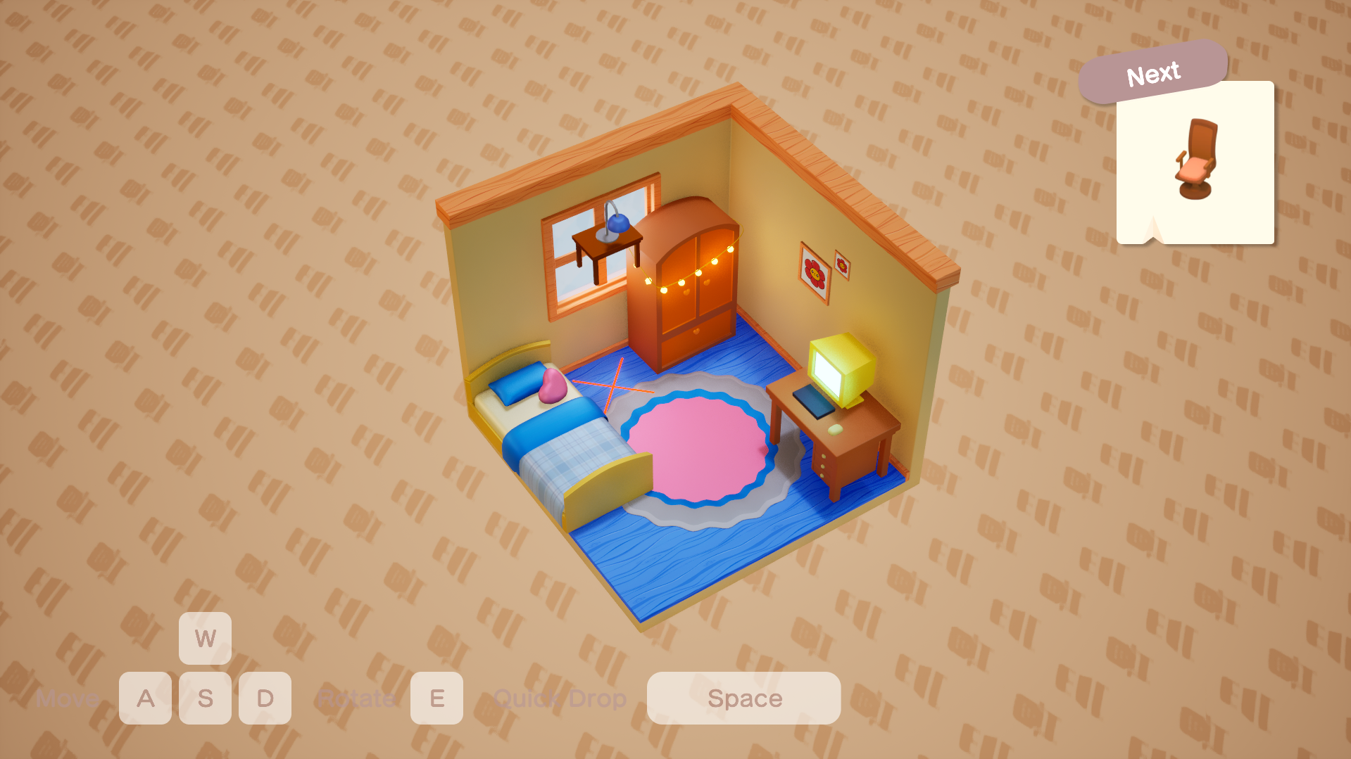 SORTRIS is a game where you take the role of an interior designer but with a twist, the furniture falls into place! Help out five clients in designing their dream rooms and organize their stuff however you want. Get creative and try your best to give these clients the room they deserve in this cute but hectic experience!